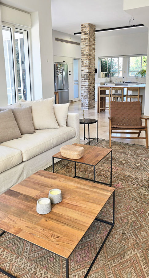 את הבית במושב צור משה קיבלתי בשלב ראשון להלבשה מחדש של סלון ופינת האוכל. הלקוחה אמרה לי שהיא לא מצליחה לחבר את הסגנונות שהיא מבקשת והיא מרגישה שעושה טעויות. ואכן היו טעויות. כבר בפגישה השנייה או השלישית הבנתי שבכדי לייצר הרמוניה שלמה ונעימה במרחב הקומה הראשונה, עלינו גם לשפץ את המטבח. לעיתים אנשים נבהלים מהמחשבה של שיפוץ מטבח, אבל לא יודעים שניתן להשאיר את גוף הארונות ולהחליף רק את החזיתות. במקרה הספציפי הזה גם החלפנו את השיש, את הכיור וברז המטבח וזכינו לקבל הרמוניה שמשדרת שפה אחידה של עיצוב.